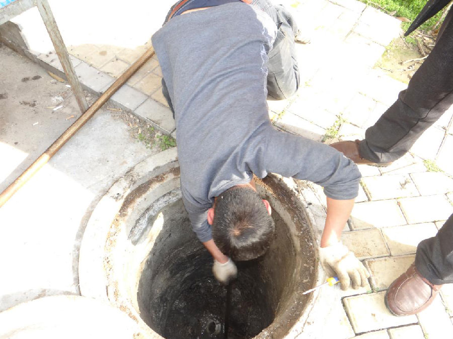 工人依次將井蓋掀開,發(fā)現(xiàn)水泥井下面油污淤積致管道堵塞,其主要原因是,每日產生的殘羹剩菜和廢棄物未經過濾網(wǎng)直接流入下水管道,固體垃圾進入管道遇到油污后導致管道堵塞。