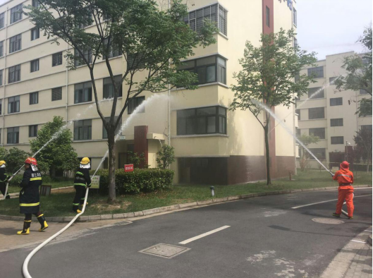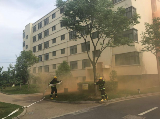 14:20分,園區(qū)公舍2號宿舍樓冒起滾滾濃煙,隨即刺耳的火災警報聲響徹園區(qū),義務(wù)消防戰(zhàn)斗人員接到指示立即啟動消防三輪車奔赴火災現(xiàn)場。不到一分鐘時間,一至六層的租戶在疏散人員的帶領(lǐng)下掩住口鼻,彎著腰,有序地從宿舍的消防安全通道逃生。隨即,消防戰(zhàn)斗人員按照指示迅速開啟消防水泵對“起火”后的宿舍樓進行快速滅火,救護人員隨即趕到現(xiàn)場參加救護,演練持續(xù)近五分鐘后圓滿完成。